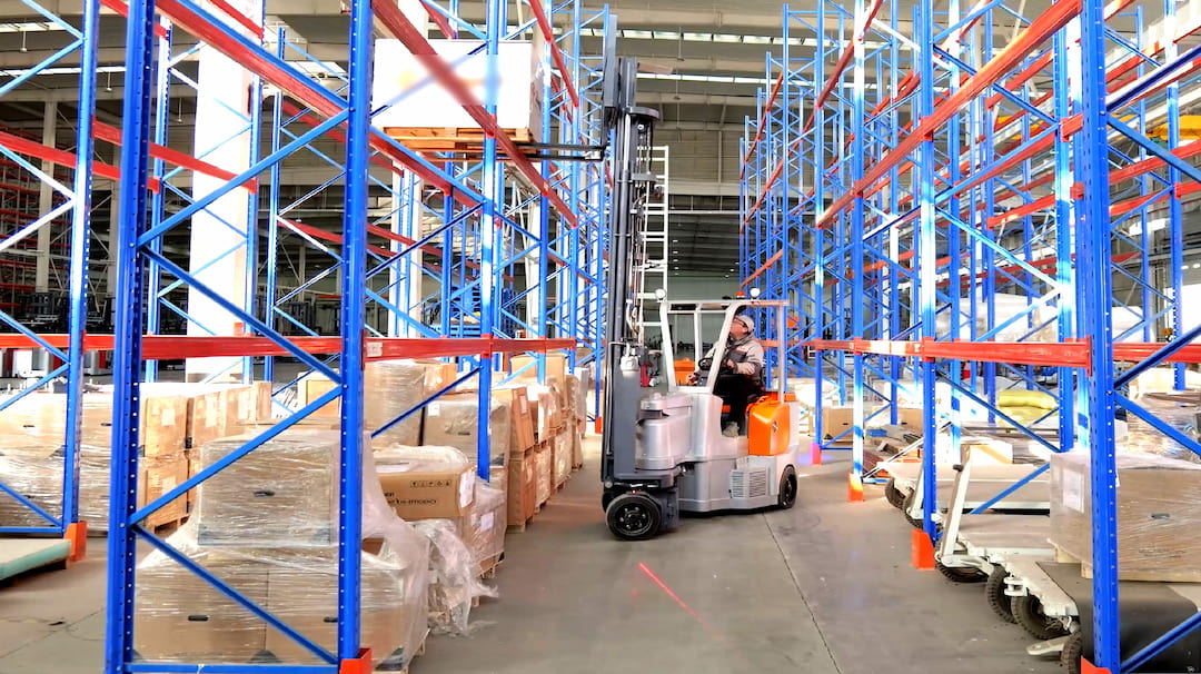 정격 하중은 2.0톤, 최대 양정 높이는 12.5m이며, 특수 갠트리 조향 방식을 적용하여 좁은 통로에서도 더욱 유연하게 작업할 수 있습니다. 최소 작업 통로 폭이 2m에 불과하여 창고 관리자에게 공간 활용도를 극대화해 줍니다.